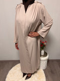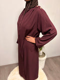 Elegante maxi jurk met een vloeiende pasvorm en bijpassende riem. De jurk heeft wijde mouwen en een zachte stof die mooi valt en comfortabel draagt.